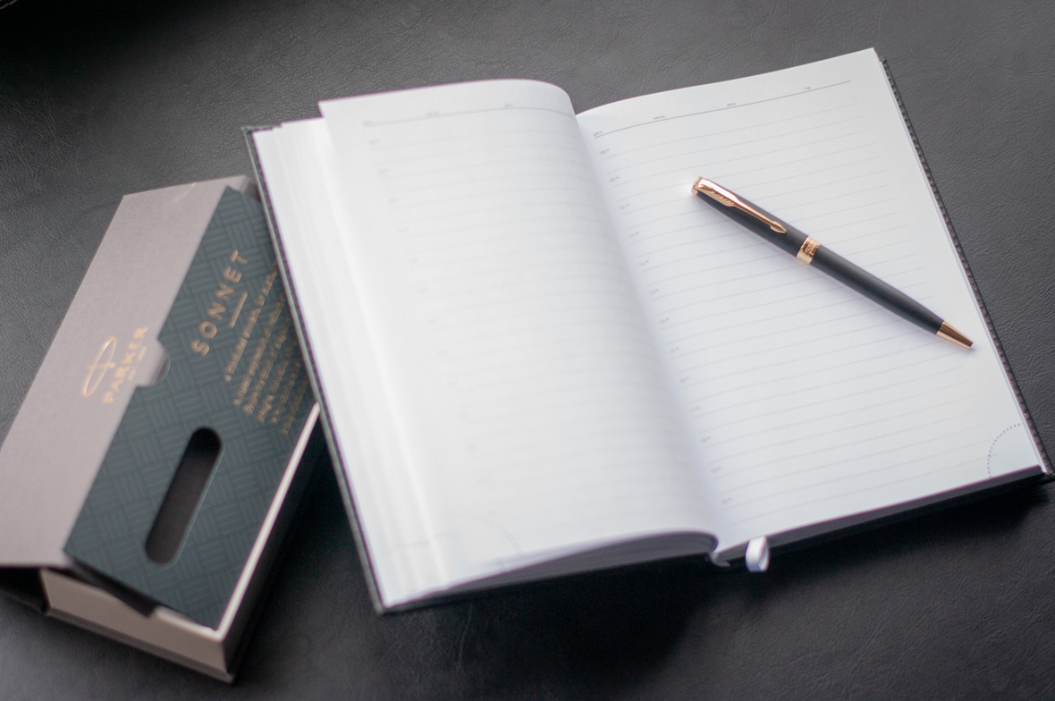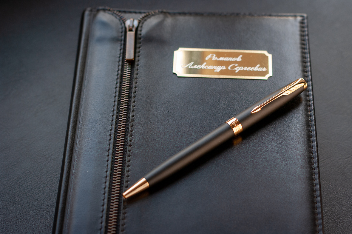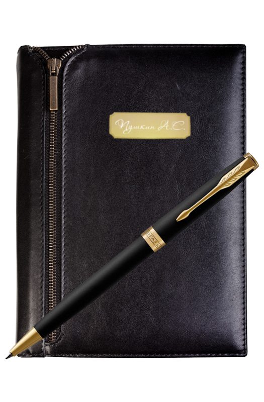 Подарочный набор VIP Ежедневник и ручка Parker Sonnet Matte Black GT от официального дилера Parker в Тюмени. Вы можете дополнительно заказать гравировку, которая подчеркнет Вашу оригинальность и придаст памятность статусному подарку. Все ручки Паркер поставляются в фирменном футляре.