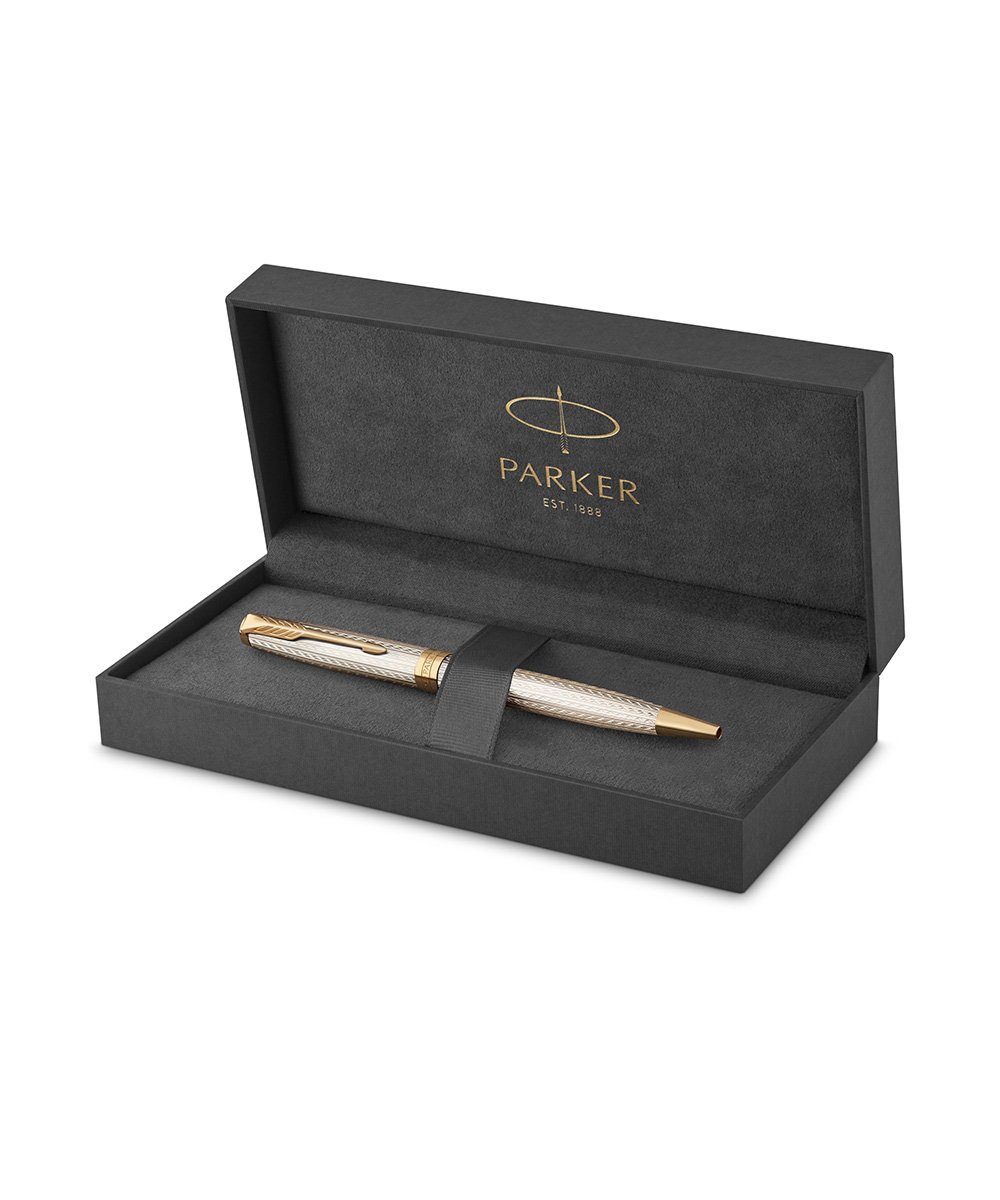Ручка шариковая Parker Sonnet Premium Silver Mistral GT от официального дилера Parker в Тюмени. Вы можете дополнительно заказать гравировку, которая подчеркнет Вашу оригинальность и придаст памятность статусному подарку. Все ручки Паркер поставляются в фирменном футляре.